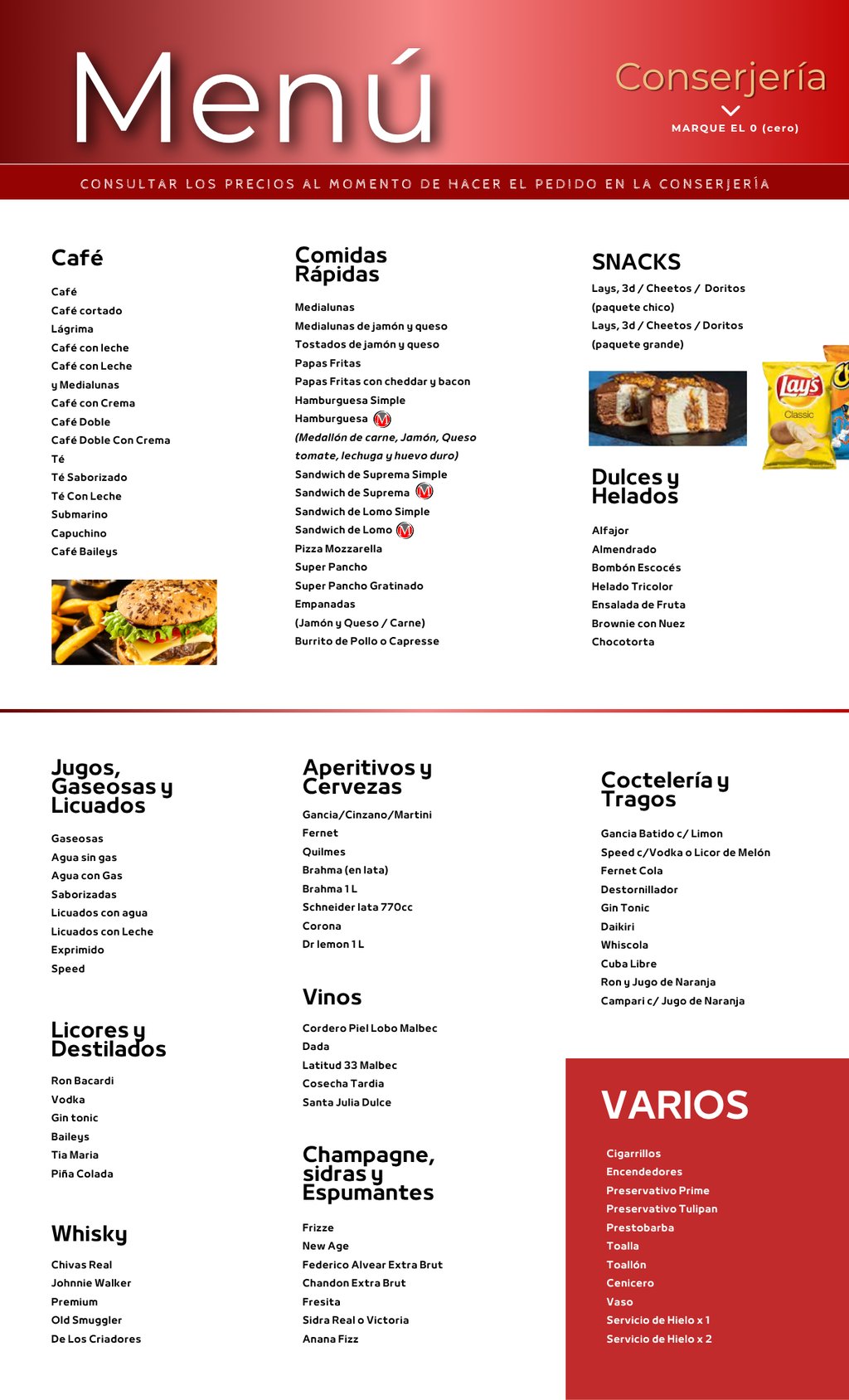 Hacé tu pedido y consultá precios desde el teléfono junto a la cama. Marcar el número cero (0)