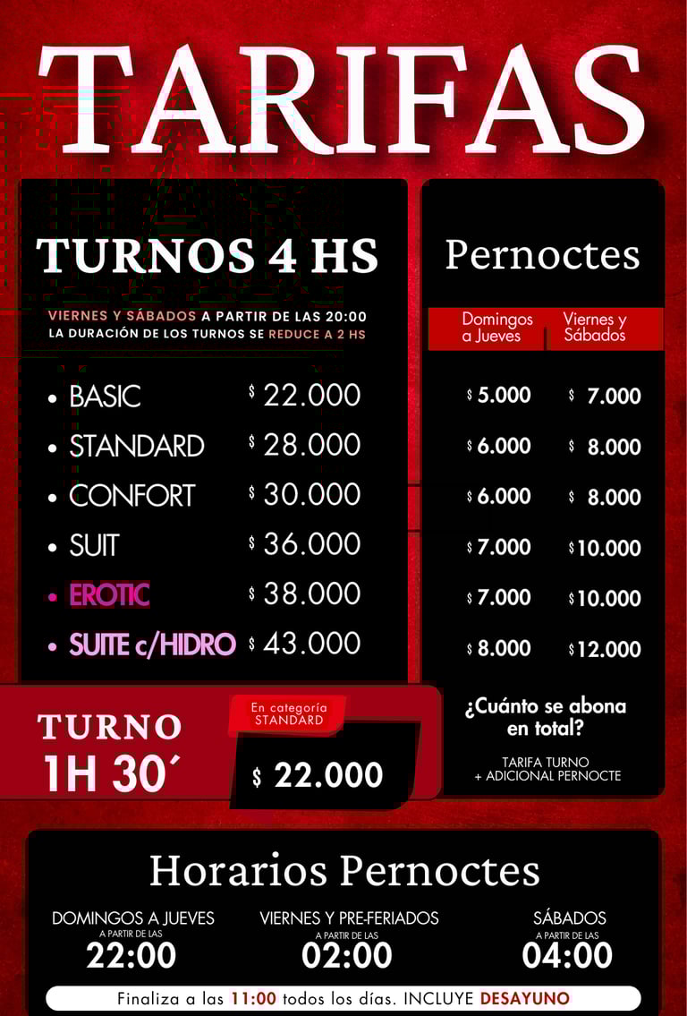 Promoción de DOMINGOS A JUEVES de noviembre y diciembre te esperamos a partir de las 22 hs, solo vas a pagar el turno, y sin costo adicional disfrutás el pernocte hasta las 11 am (No incluye desayuno esta promoción)